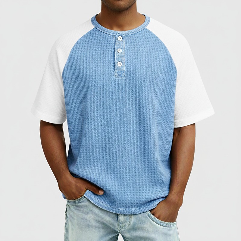 Men's Waffle Henley Shirt Tee Baseball T-Shirt Short Sleeve Color Block Textured Casual Buttons Raglan Sleeves Henley Casual Daily Outdoor Summer Spring Spring Fall Yellow Light Blue Purple Henley