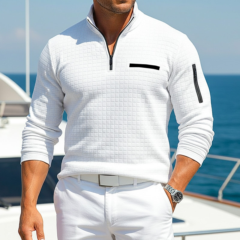 Men's Waffle Polo Shirts Textured Casual Sports Outdoor Zip Quarter Zip Long Sleeve Fashion Modern Zip Up Pocket Spring Fall Spring Fall Regular Fit Black White Navy Blue Purple Orange khaki
