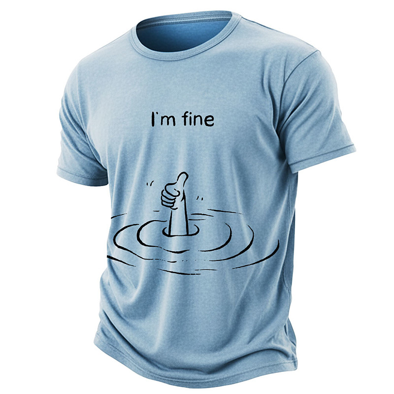 „I'm fine" Herren-T-Shirt mit Grafikprint, Vintage-Waschung, blauer Ringer-Print, Used-Look, sarkastischem, schwarzem Humor, 65 % Baumwollmischung, weiches, lässiges Oberteil, Größen: S, M, L, XL,