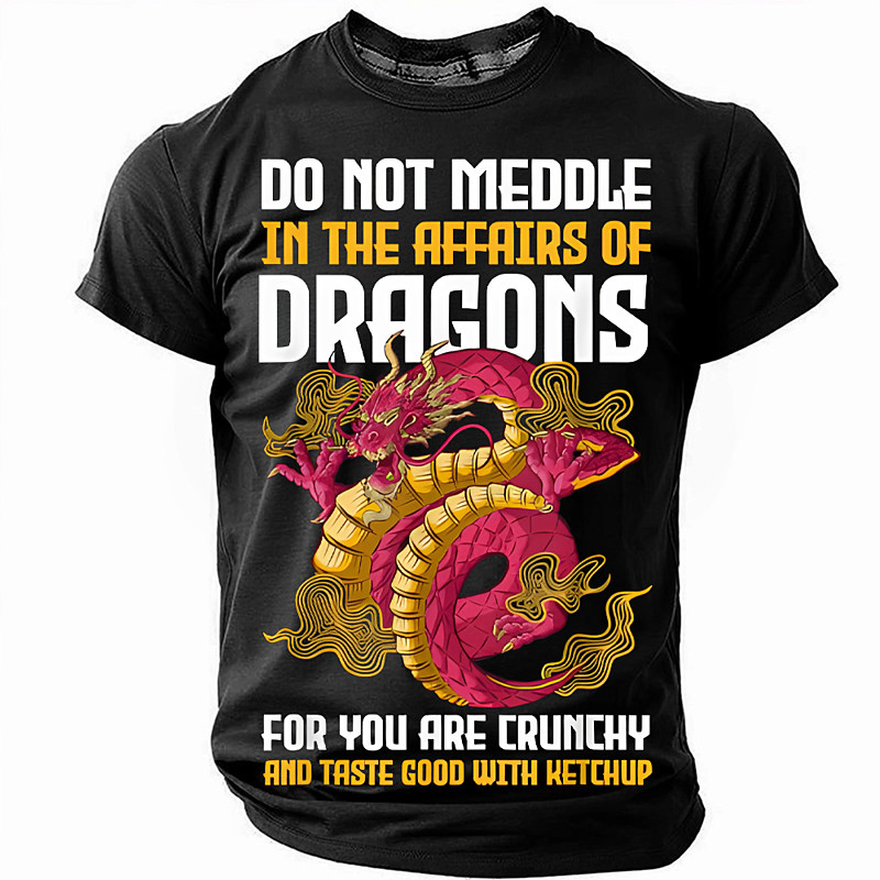 Mens Dragon Graphic T-Shirt Funny 'Do Not Meddle In The Affairs Of Dragons' Crunchy Ketchup Quote Short Sleeve