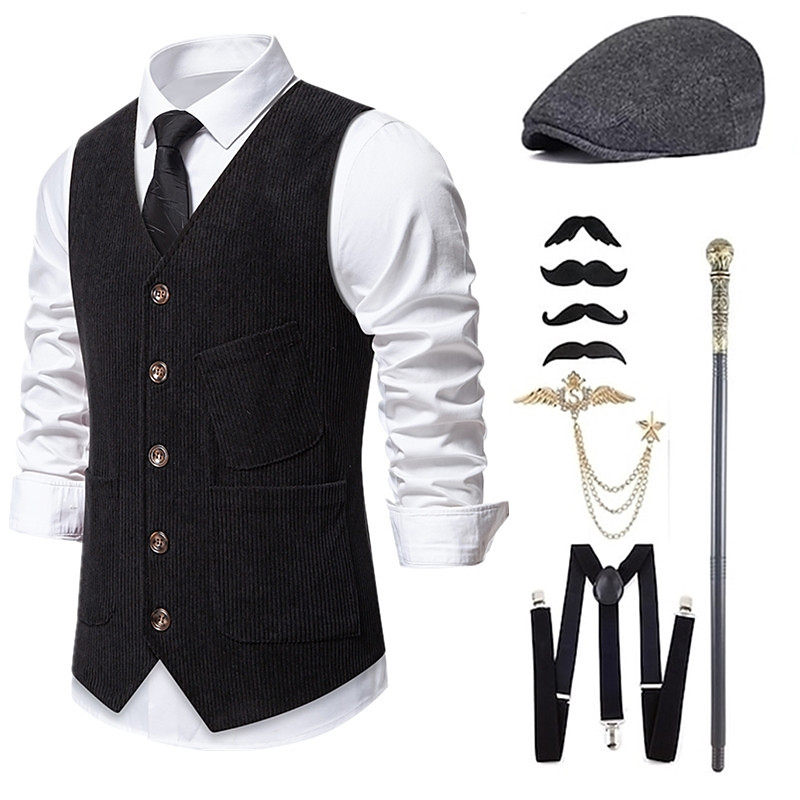 1920s Vintage Inspired The Great Gatsby Party Costume Masquerade Accessories Set Sleeveless Collarless Fancy Dress Men's Halloween Party Evening Casual Daily Adults' Vest Hat All Seasons