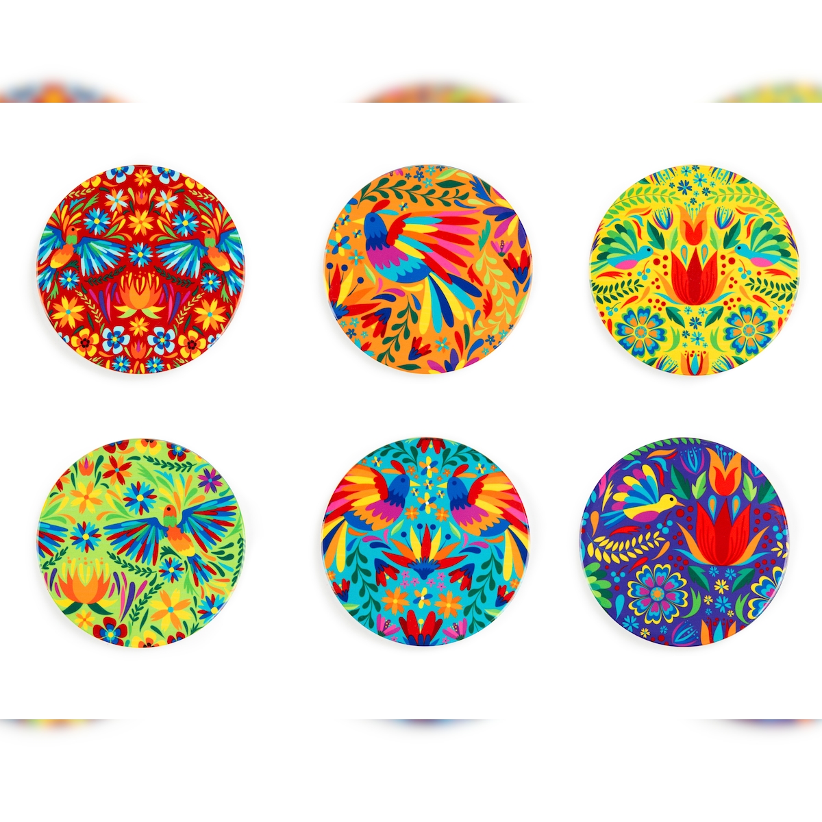 Excelsa Set mit 6 Untersetzern Mexican Flowers Keramik 10,5 cm Bunt