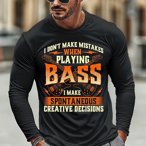 Non commetto errori quando suono il basso, prendo decisioni creative spontanee. Maglietta a manica lunga divertente bassista musicista umorismo maglietta grafica uomo lettore musicale regalo maglietta