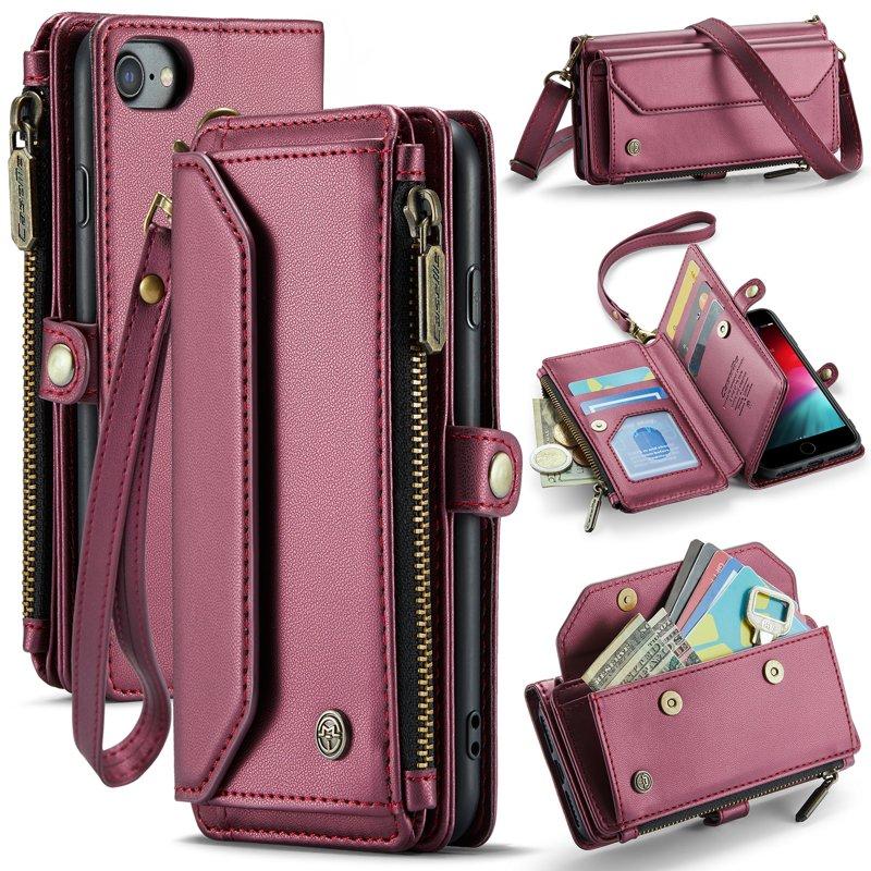 CASEME Plånboksfodral Konstläder för iPhone 6/6s/7/8/SE 2020/2022 Vinröd
