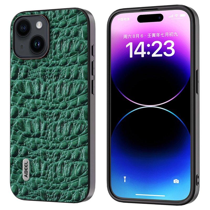 ABEEL Mobilskal till iPhone 15 Plus Canopy Textur Grön Äkta Läder