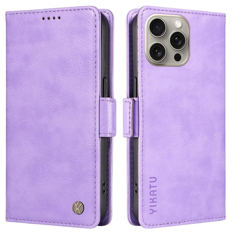 YIKATU iPhone 15 Pro Max Konstläder Plånboksfodral Litchi Texture - Lila