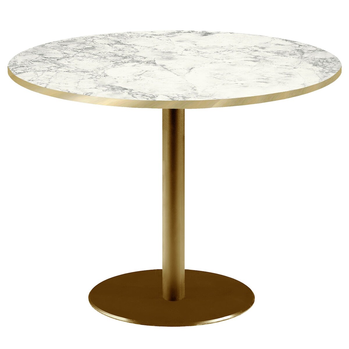 RestooTab - Tisch Rome XL goldmetallic Ø120 Dekor Marmor bianca luna Kanten messingfarben