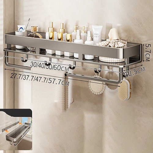 Mobiletto per lavabo da bagno senza foratura, grigio canna di fucile, per riporre oggetti in modo avanzato