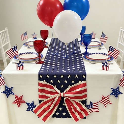 Tischläufer mit Schleifenmotiv zum 250. Jahrestag der Unabhängigkeit der USA (1776–2026) – ideal als Gartendekoration für patriotische Feierlichkeiten zum 4. Juli, dem Unabhängigkeitstag.