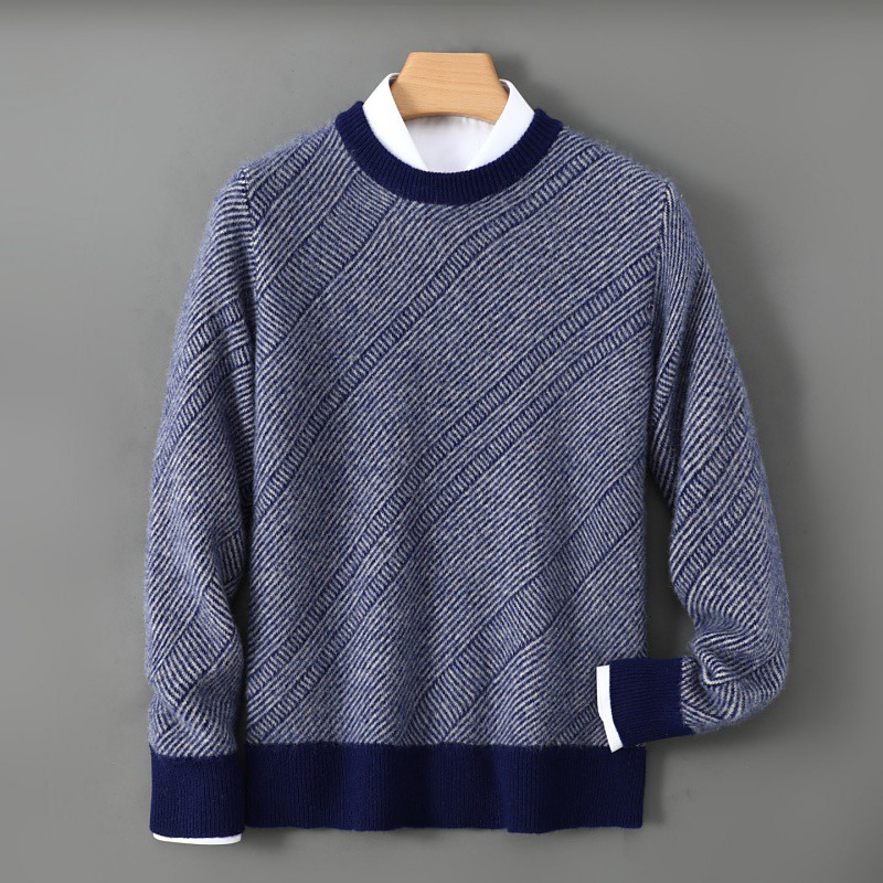 Men's Wool Sweater Knit Sweater Knitted Pullover Ribbed Knit Regular Tops Knitted Color Block Crew Neck Fashion Streetwear Daily Wear Going out Clothing Apparel Fall Winter Blue Camel S M L