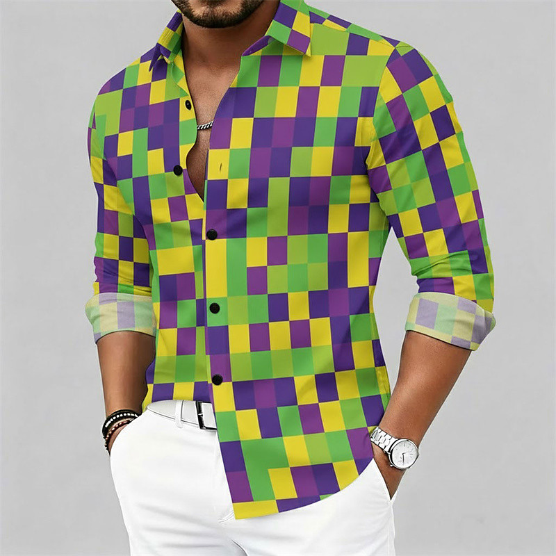 Men's Mardi Gras Carnival Shirt – Color Block Festival Style