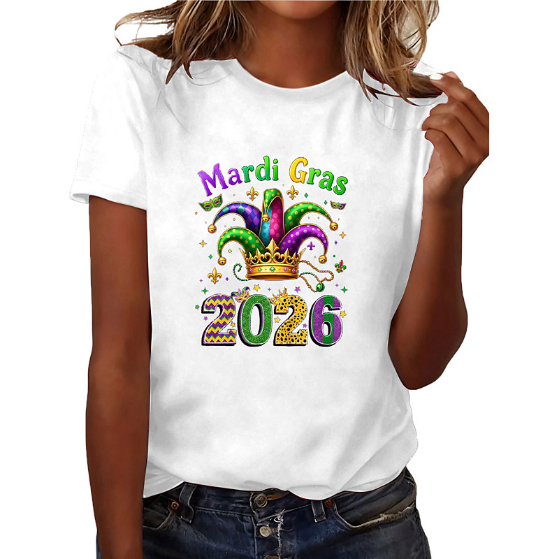 T-shirt Sleeve T-shirt Mardi Gras 2026 for Unisex Adults' Hot Stamping for Carnival Mardi Gras Club Festival