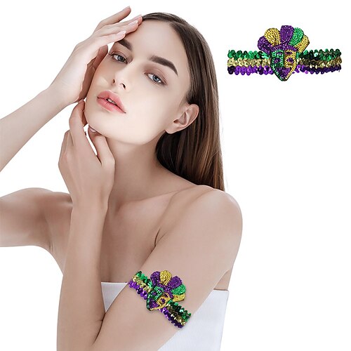 Mardi Gras 2026 Karneval Armband Cosplay Pailletten Mardi-Gras-Farben Erwachsene Damen Karneval Fetter Dienstag Karnevalsparade Party Leistung Einfaches Karnevalskostüm Verkleiden