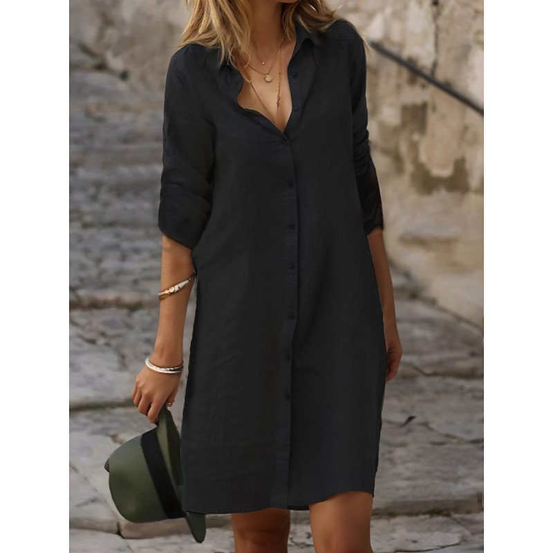 Women's Black White Blue Summer Spring Mini Dress Cotton Linen Dresses Shirt Dress White Cotton Dress Vacation Basic Modern Daily Weekend Loose Fit Plain Shirt Collar