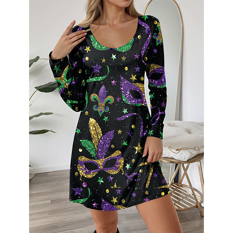 Women's Mini Dress T Shirt Dress Tee Dress A Line Dress Casual Daily Regular Fit Graphic Long Sleeve Crew Neck Black Purple Green Spring Winter