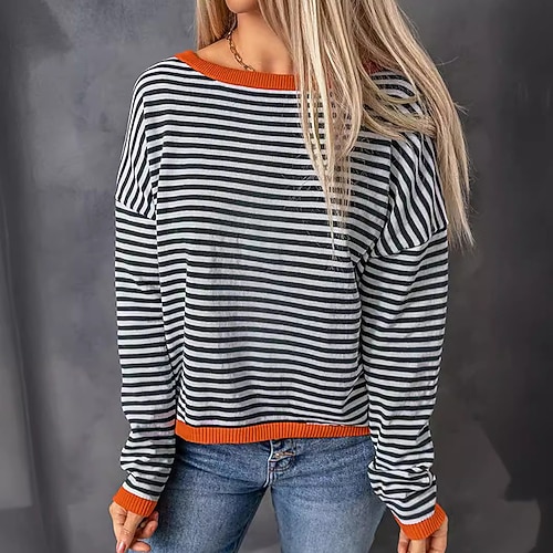 Per donna Top casual Pullover Maglione Manica Lunga Top Athleisure A righe Morbido Caldo All'aperto Vacanze abbigliamento sportivo Abbigliamento sportivo Nero Rosso Blu