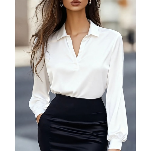 Per donna Blusa Tinta unica Casual Manica Lunga Scollo a V Top Regolari Nero Bianco Rosa Blu Primavera Autunno
