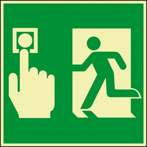 Aufkleber I PERMALIGHT power langnachleuchtend Rettungszeichen Fluchttüranlage o.Zeitverzögerung, DIN, Folie, 100x100mm, DIN 67510