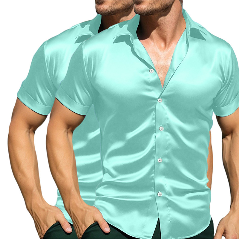 Men's Shirt Silk Like Satin Shirt Casual Shirt Button Up Shirt Plain Formal Vacation WhiteGreen White Blue Green Short Sleeve Lapel Summer All Seasons Clothing Apparel Multi-pack