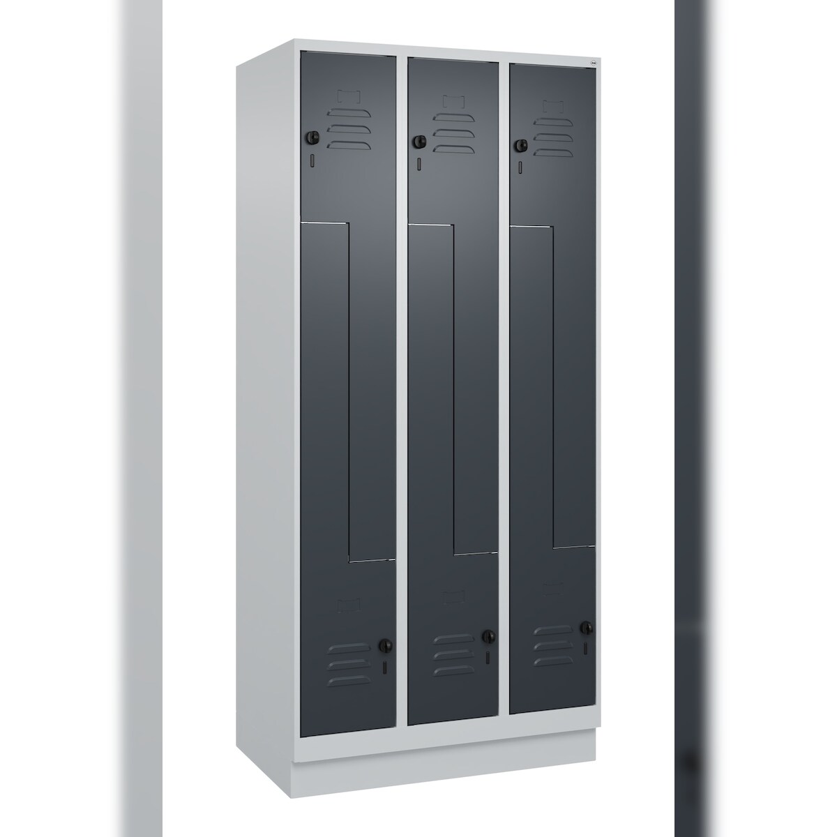 C+P Z-Spind Classic PLUS, Sockel, 6 Abteile, HxBxT 195x90x50cm, Sicherheitsdrehriegel, Hellgrau/Anthrazit von PROREGAL