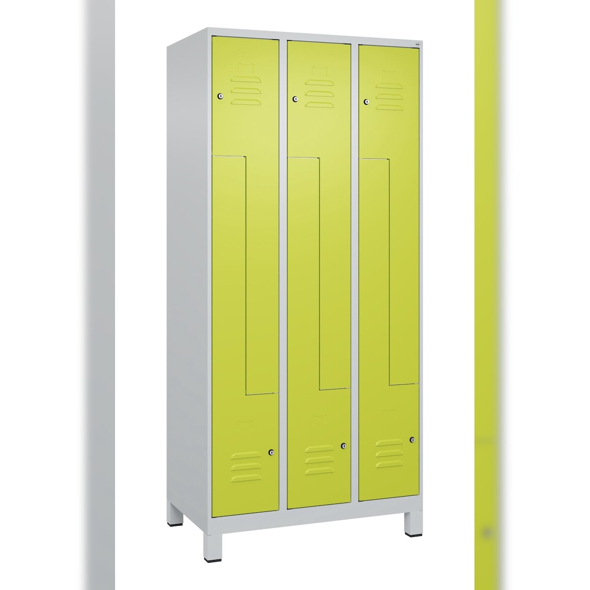 C+P Z-Spind Classic PLUS, Füßen, 6 Abteile, HxBxT 195x90x50cm, Zylinderschloss, Hellgrau/Clowngrün von PROREGAL