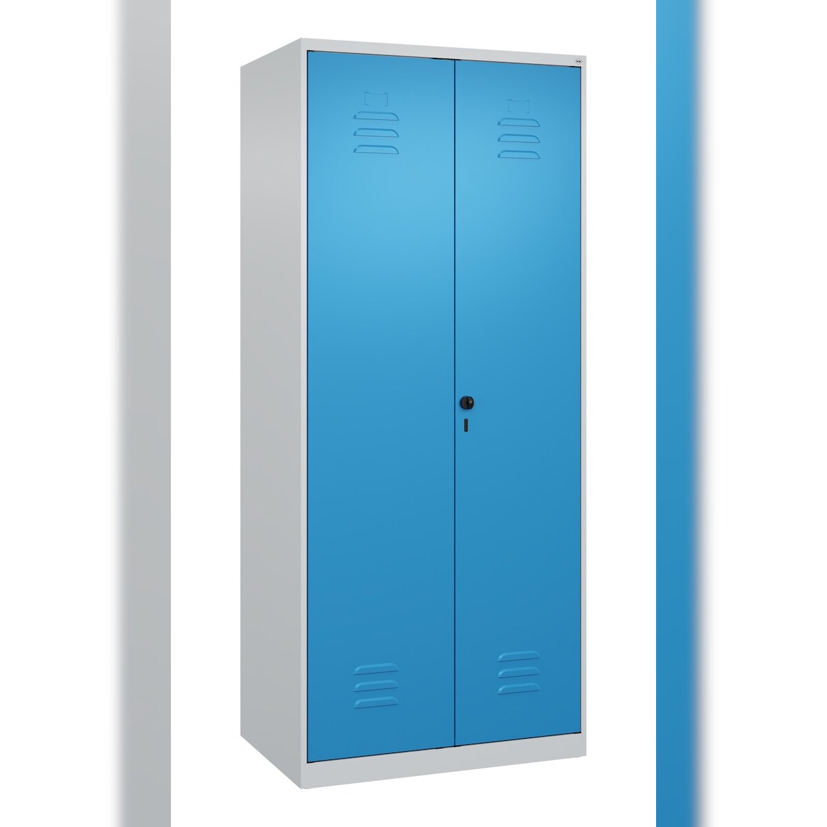 C+P Spind Classic PLUS, Sockel, 2 Abteile, HxBxT 195x80x50cm, Sicherheitsdrehriegel, Hellgrau/Fernblau von PROREGAL