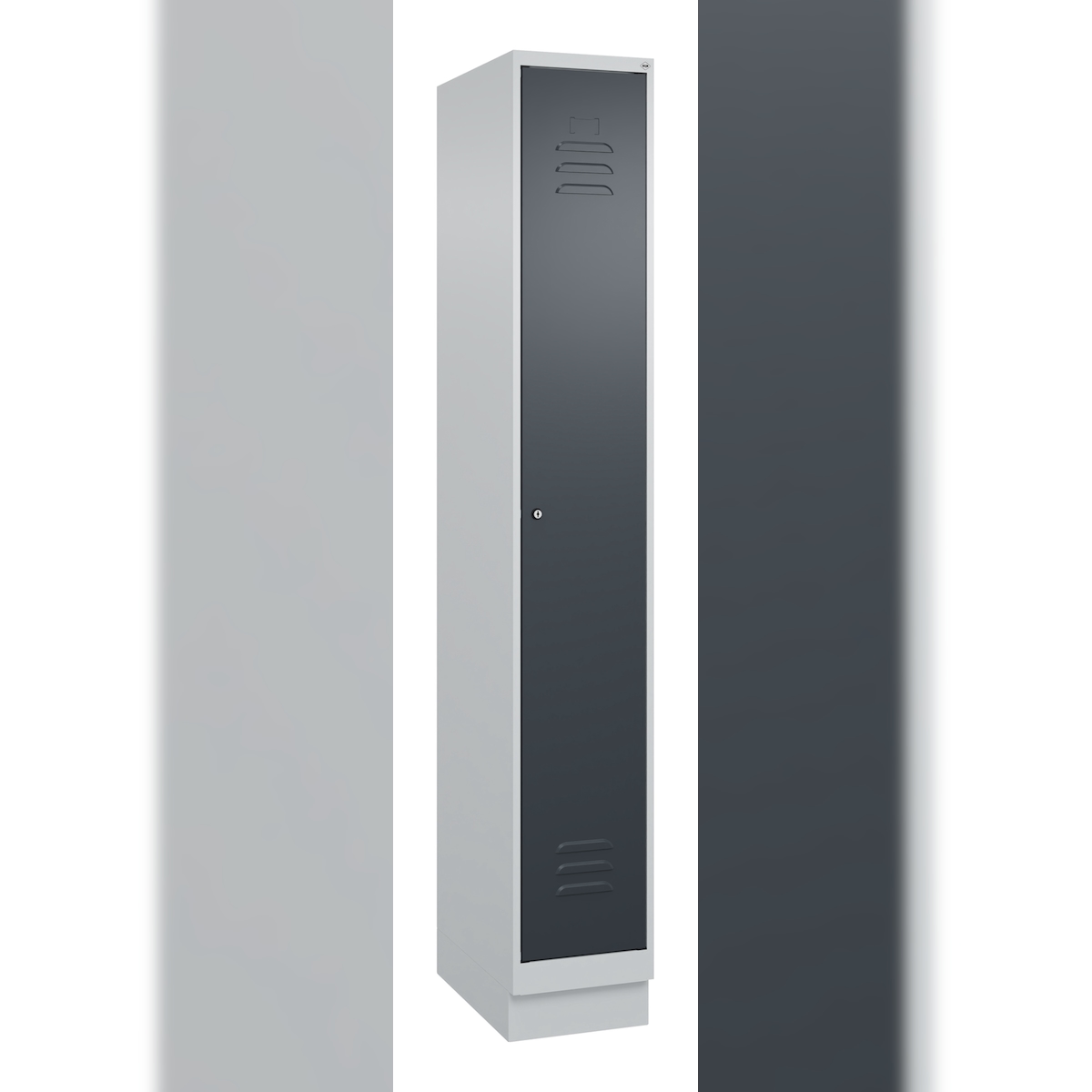 C+P Spind Classic PLUS, Sockel, 1 Abteil, HxBxT 195x30x50cm, Zylinderschloss, Hellgrau/Anthrazit von PROREGAL