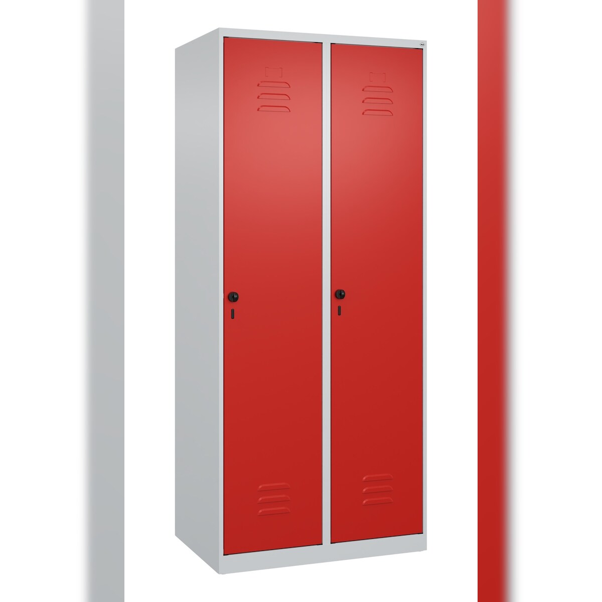 C+P Spind Classic PLUS, 2 Abteile, HxBxT 185x80x50cm, Sicherheitsdrehriegel, Hellgrau/Rot von PROREGAL