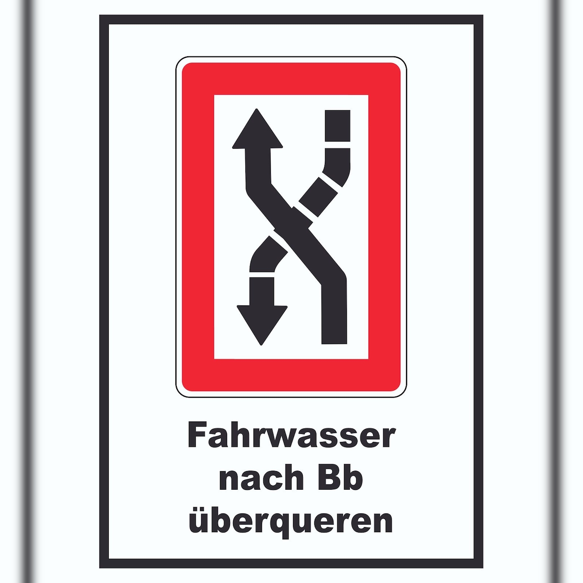 HB-Druck Produktion Schild mit Text und Richtungspfeil links Herstellung hochkant A2 Rückseite selbstklebend