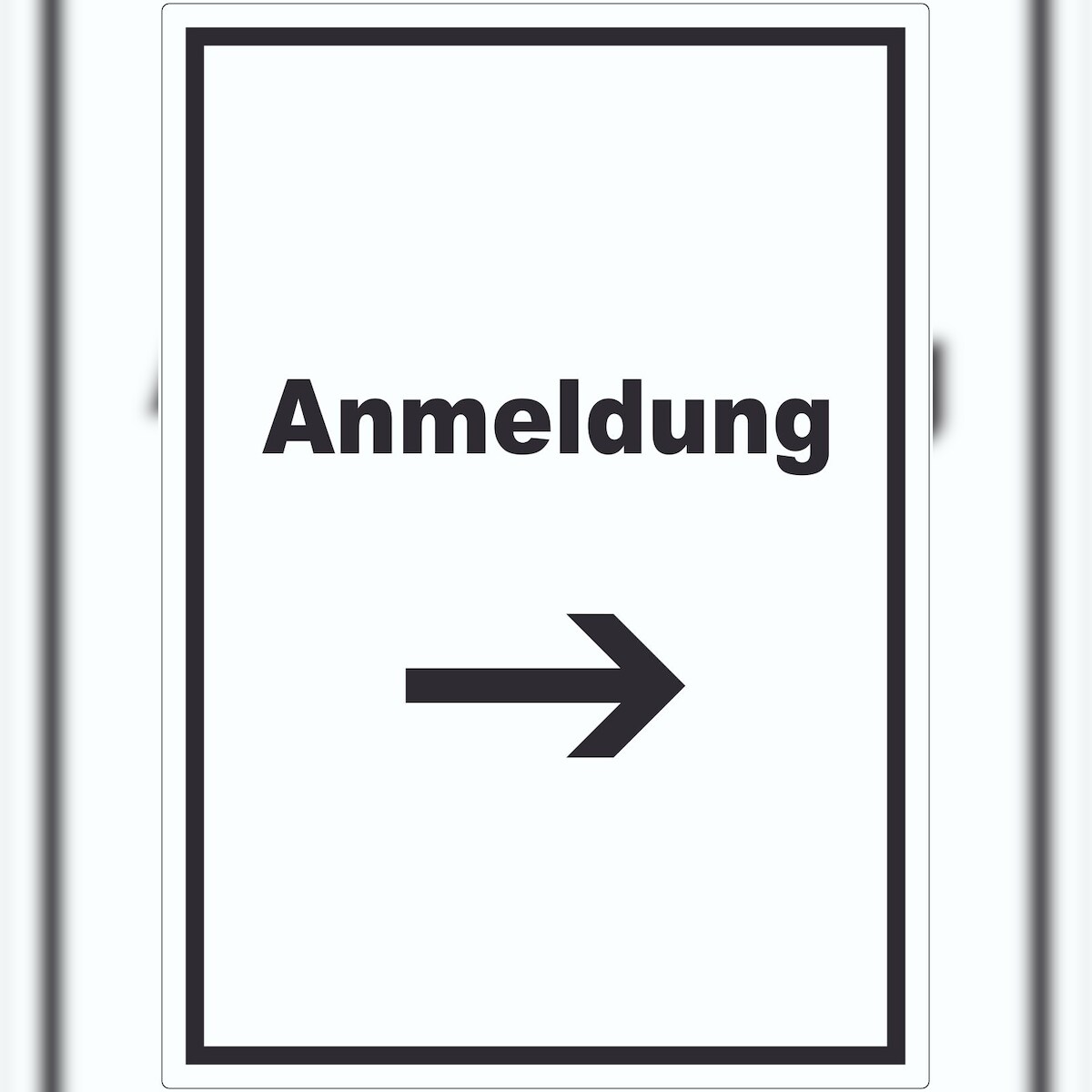 HB-Druck Anmeldung Schild mit Text und Richtungspfeil links Aufnahme waagerecht A5 (148x210mm)