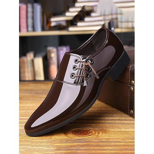 scarpe eleganti da uomo in similpelle verniciata di lusso - nere e bianche, design elegante e formale, ideali per eventi serali e matrimoni