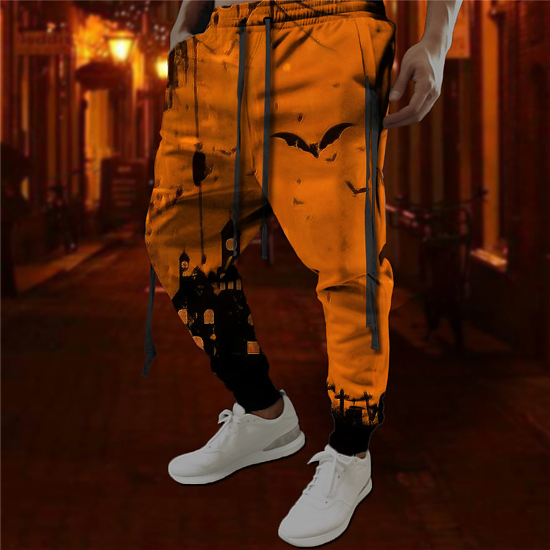Bat Gothic Halloween Men's 3D Print Sweatpants Pants Trousers Halloween Halloween Polyester Red Orange Green S M L Mid Waist Elasticity Pants