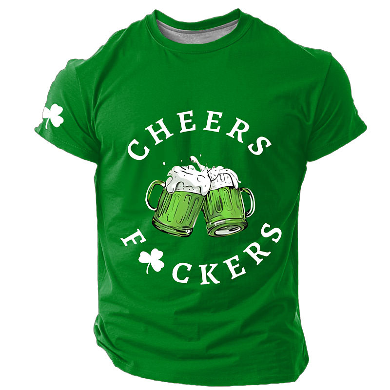 St. Patrick Men's Shamrock Lucky Irish T Shirt T shirt Tee Short Sleeve T shirt 3D Print Crew Neck Shirt Designer Casual Party Holiday Club Black Dark Green Green Summer Spring Clothing Apparel S M L