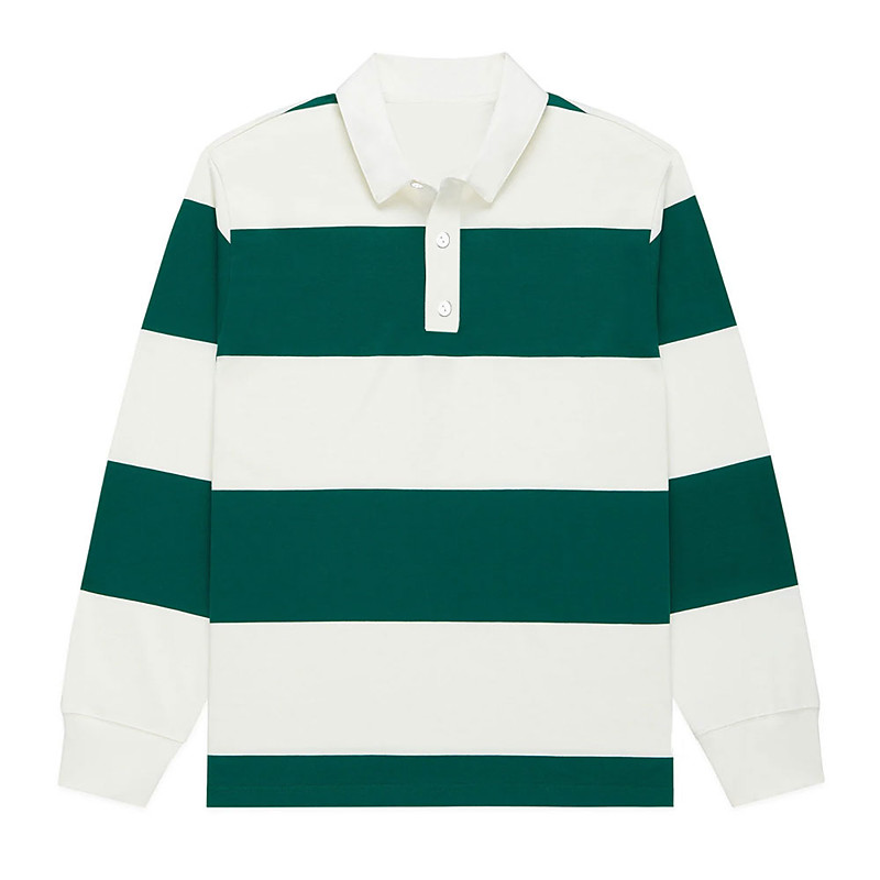 Men's Striped Rugby Polo Long Sleeve Polo Shirts Collared Shirts Sportswear Casual School Outdoor Athleisure 3D Print Spring Fall Winter Green