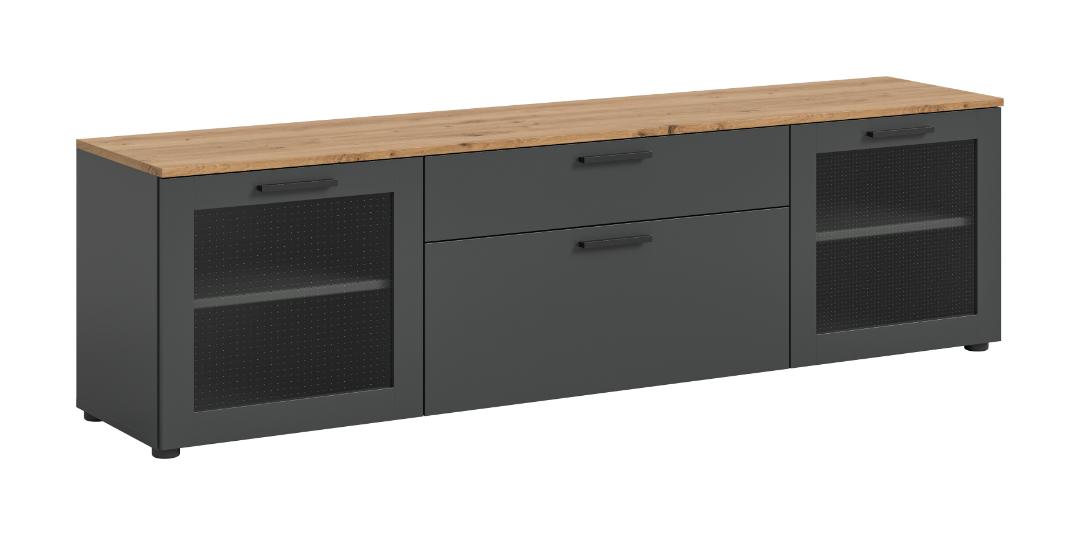 Niklas TV Tisch 2 Türen, 1 Klappentür, 1 Schublade grau.