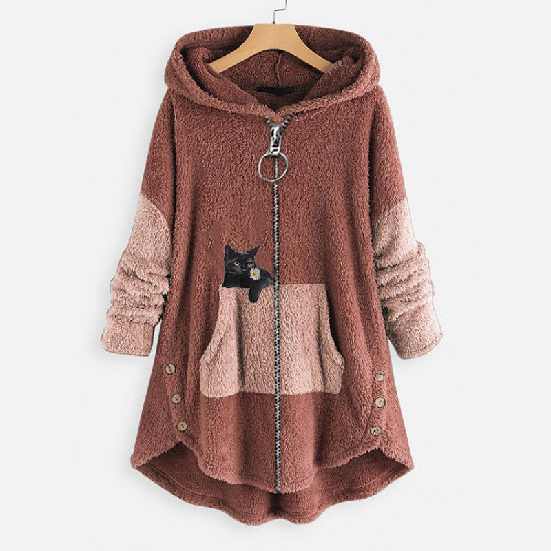 Women's Hoodie Jacket Warm Fleece Lined Pullover Sweatshirt Pajamas Patchwork Zipper Casual Cat Outdoor Vacation Zipper Long Hooded Regular Fit Long Sleeve Outerwear Black Red Army Green Fall Winter