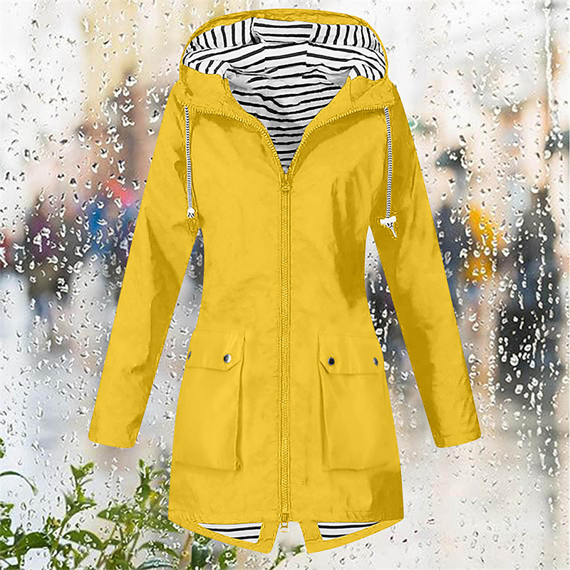 Women's Trench Coat Waterproof Rain Jackets Rain Coats Waterproof Windproof Zipper Pocket Fashion Outdoor Plain Going out Weekend Zipper Regular Hooded Regular Fit Long Sleeve Outerwear Black Yellow