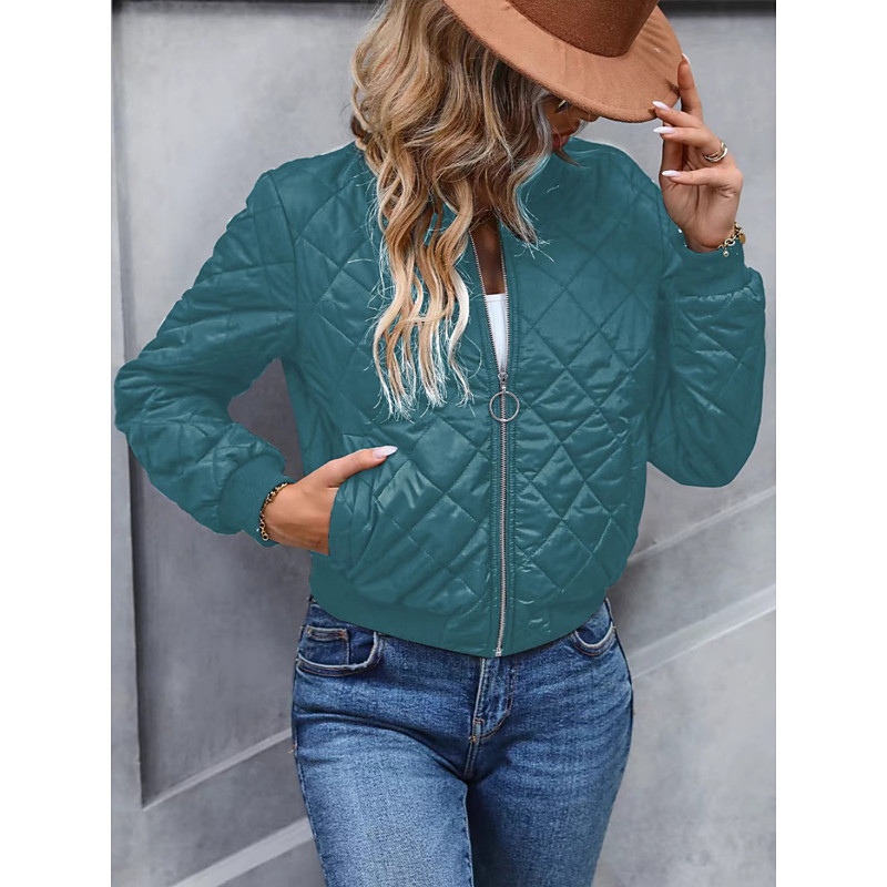 Women's Casual Jacket Comfortable Breathable Zipper Pocket Fashion Casual Plain Vacation Street Casual Daily Wear Zipper Regular Stand Collar Regular Fit Long Sleeve Outerwear Black Wine Brown Summer
