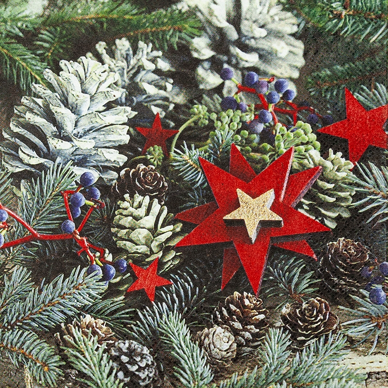 Home Fashion, Stars and Pine Cones, Lunch-Servietten aufgefaltetes Maß 33 cm x 33 cm, im Viertelfalz, 20 Stück pro Pack
