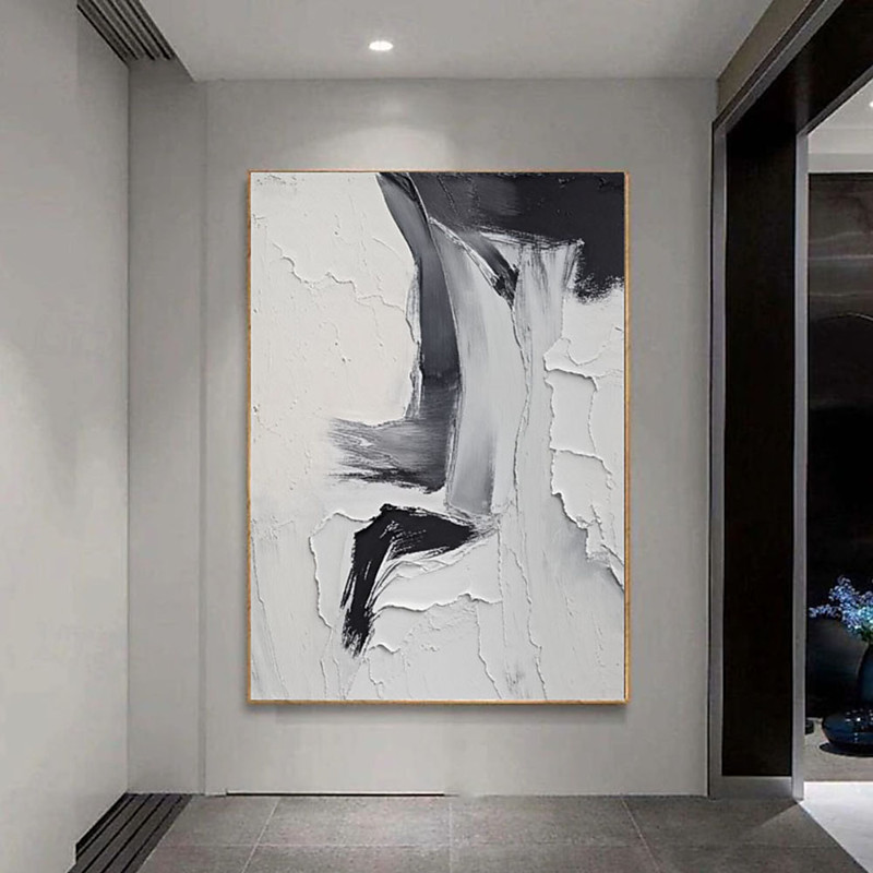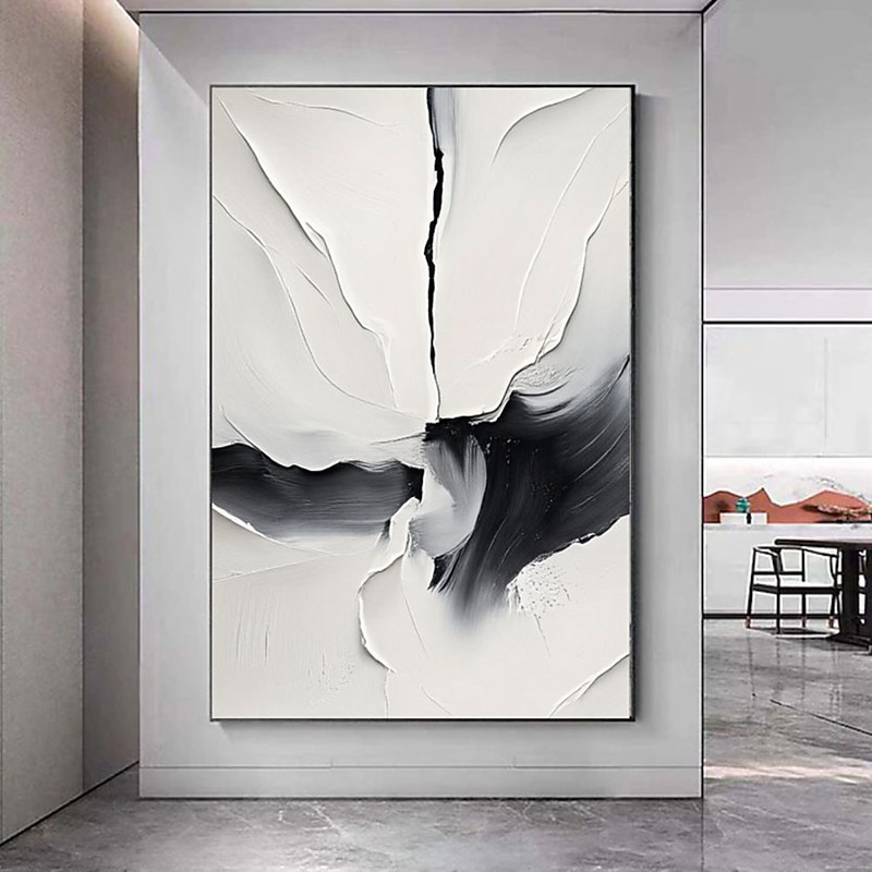 oil painting hand painted Black White Painting Abstract Wall Art Large Black And White Painting White 3D Textured Wall Art White Textured Art Textured Painting