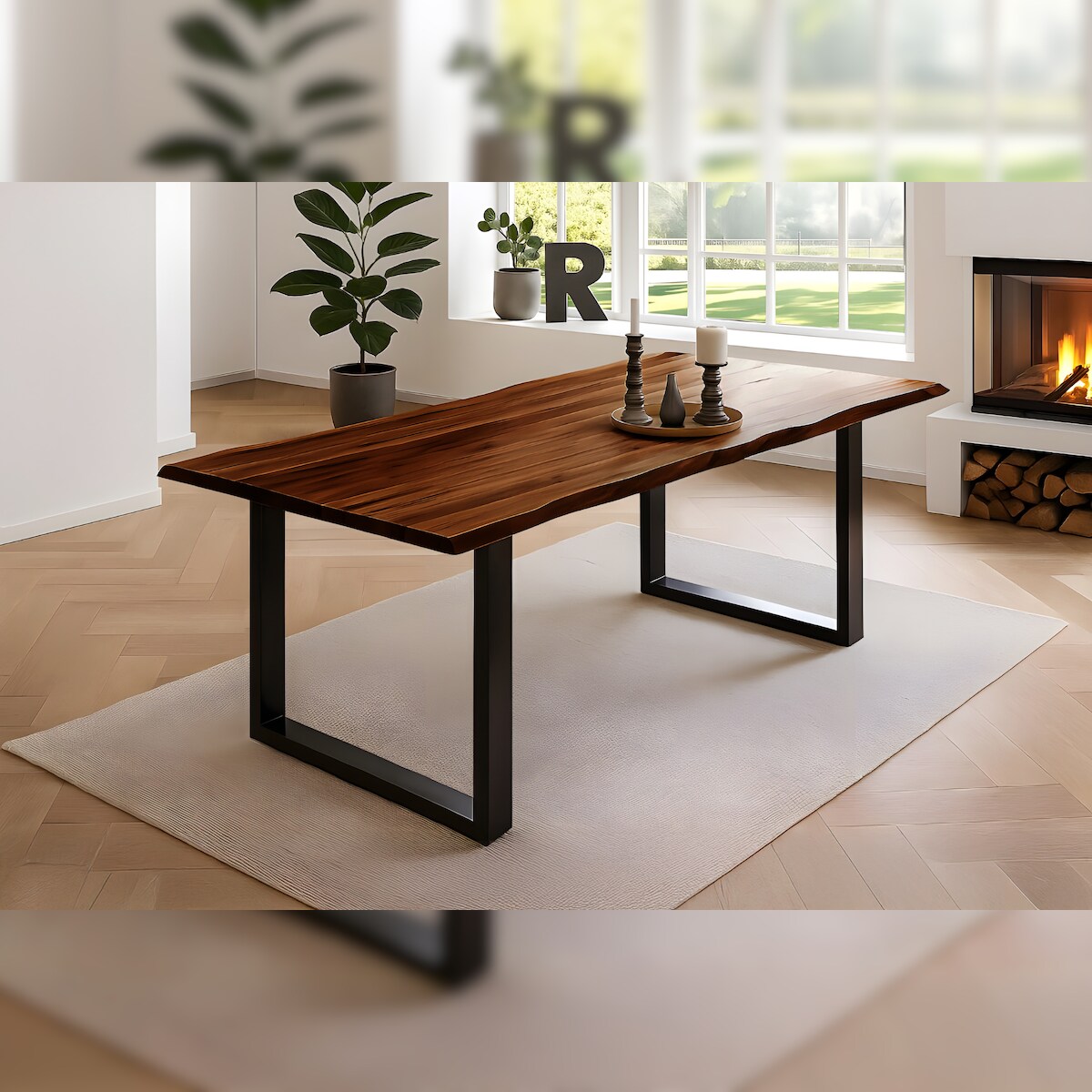 Möbelliebling Esstisch Baumkante Massiv Akazie nussbaum 180 x 90 schwarz NIAH