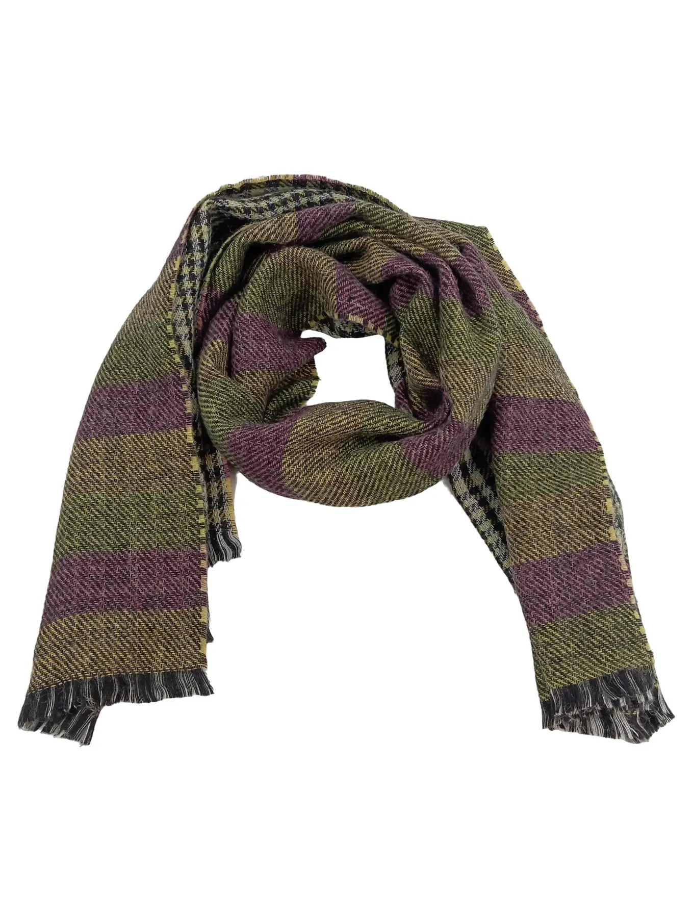 COCCINELLE Schal kariert 188 cm grün lila gelb Damen Accessoire 70 cm breit