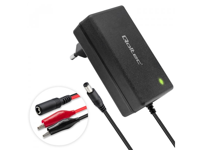 Qoltec automatinė kroviklis do akumulatora AGM GEL STD | Prostownik 24V | 19.2W | 5.5x2.1 | Kabelis 1.8m