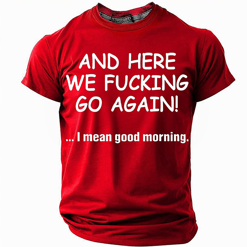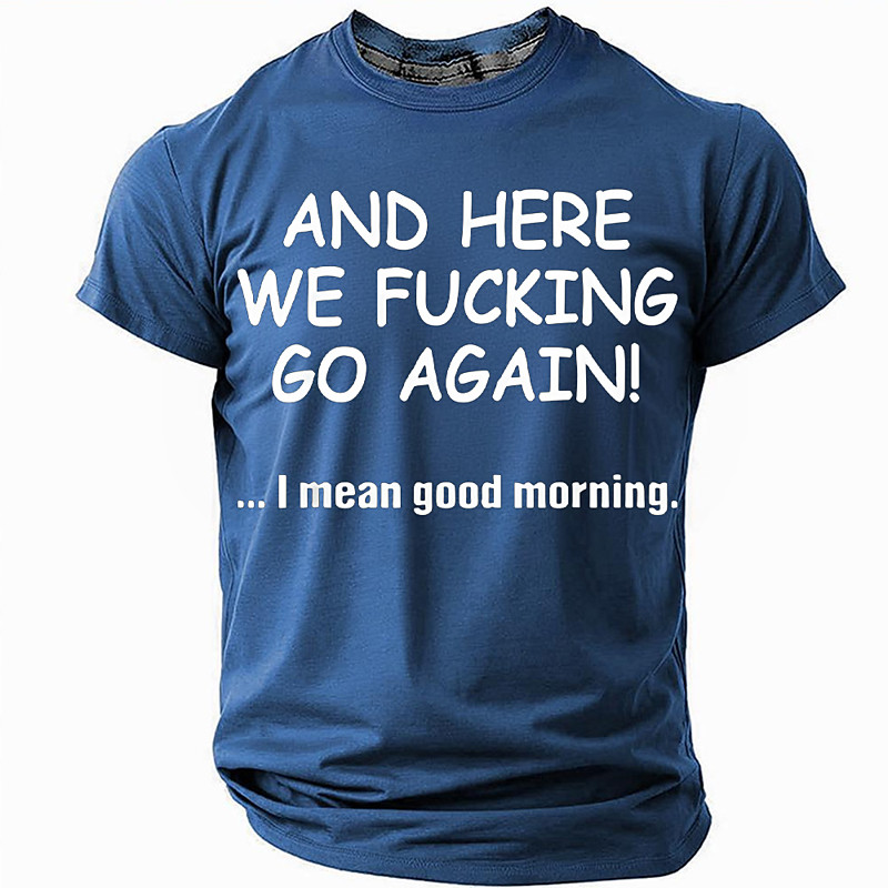 Men's Sarcastic Graphic 'And Here We Fucking Go Again' Funny Lifestyle Short Sleeve T-Shirt