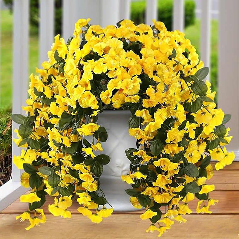 UV Simulation Artificial Morning Glory,Simulation Artificial Flower Bouquet - Fade Resistant Outdoor Flowers,Fake Petunias,Realistic Hanging Plants Flowers Vines Garden Yard Decoration