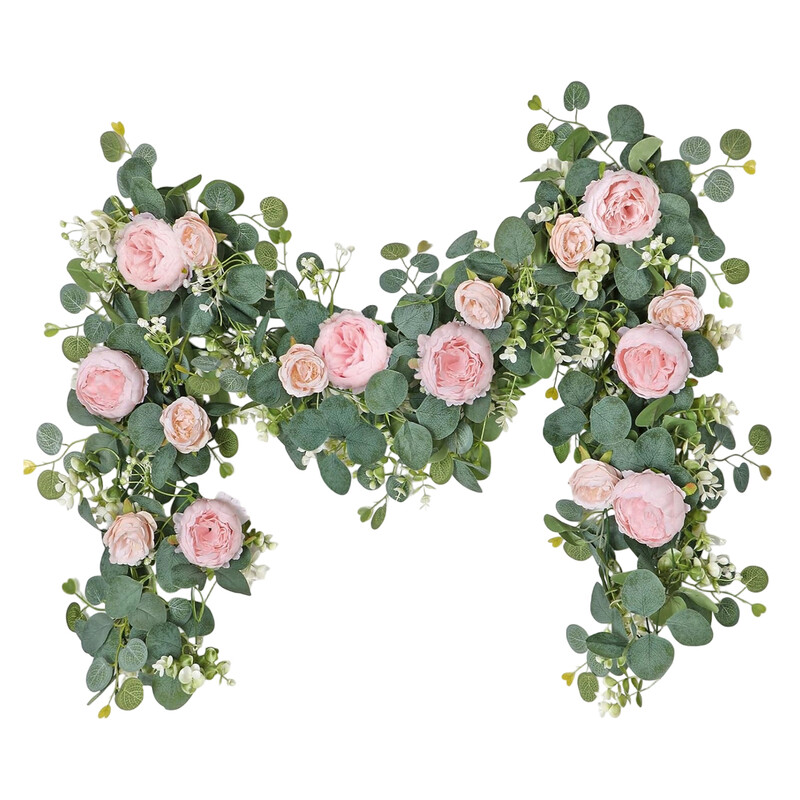 Wei's Moment 2Pcs 6.56FT Artificial Eucalyptus Flower Garland with Fake Rose Flower Vine Seeded Eucalyptus Leaves Greenery Garland for Wedding Table Backdrop Party Centerpiece Room Decor (Vintage Pink)