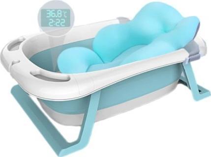 DWM BABY BATH FALTBARE REISEWANNE + THERMOMETER UND KISSEN BLAU