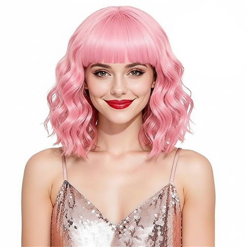 Carnival Wig Pink Blue Purple Wavy Bob Short Synthetic Festival Wig Mardi Gras Parade Cosplay Costume Hair for Women