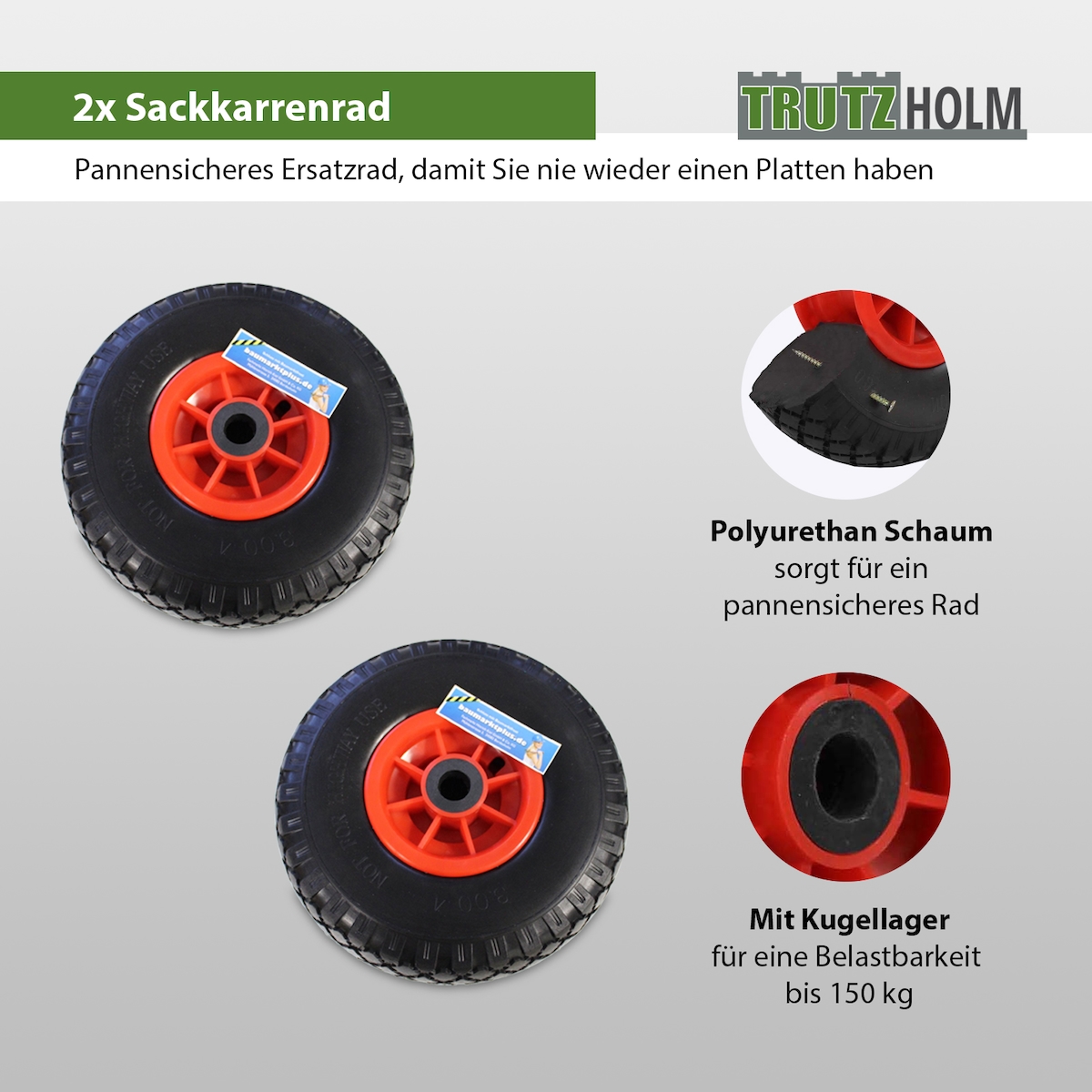 TRUTZHOLM 2x Sackkarrenrad PU-Rad 260x85 mm 3.00-4 60 mm versetze Nabe Ø 20 mm rot Vollgummi Bollerwagen