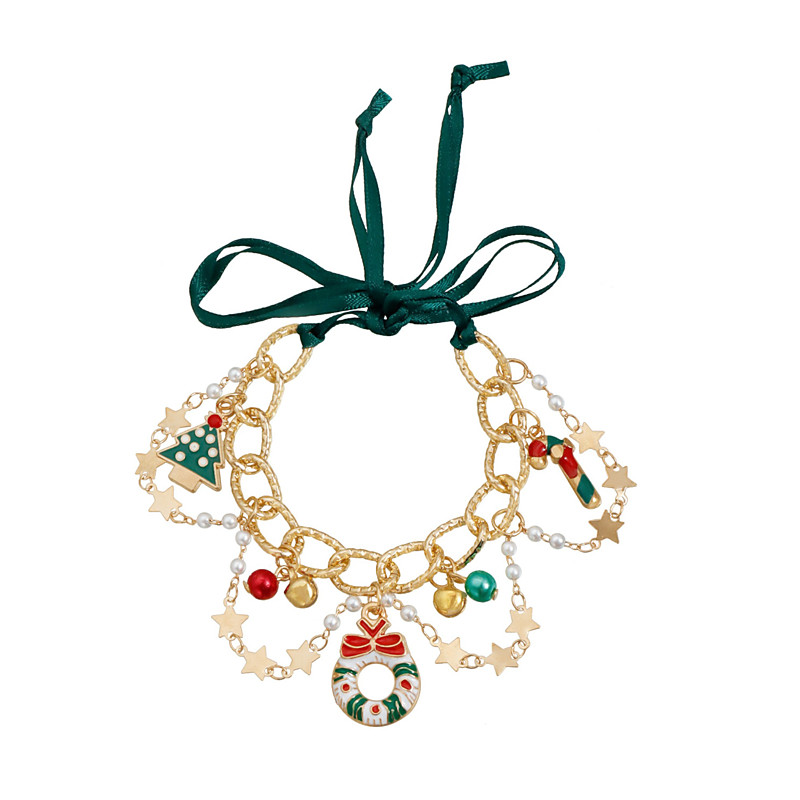 Women's Christmas Necklace and Bracelet Set, Red and Gold with Santa Tree Charms, Perfect for Holiday Parties and Gifts